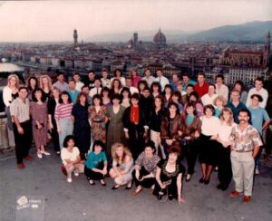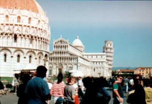 Florence was a nice city with the Ferrari museum sitting high over great views of the city, some Michelangelo painting and the statue of David. Here, after coming back from a pasta meal, (which gave us all the shits) ice cream and ?hen Harry met Sally at the cinema: one of the girls stepped in front of a mad Italian driver, she was ok but had to spend a few days in hospital and re-join us later in the trip. Florence was where the group photo was taken.