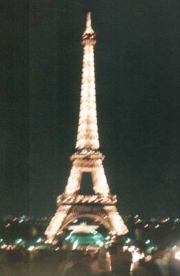 Then followed a long journey across Belgium into France and then onto Paris. We entered Paris is it started to get dark and by the time we reached the arc de triomphe is was fully dark. It was quite a strange experience and a memorable way to come into Paris. Then there was a sort tour of Paris by coach and we saw the famous view of the yellow headlights and red taillights in a long line heading away down the Champs Elys?s. We stopped to take photos of the Eiffel tower at night and then onto the camp site and a chalet for the night.